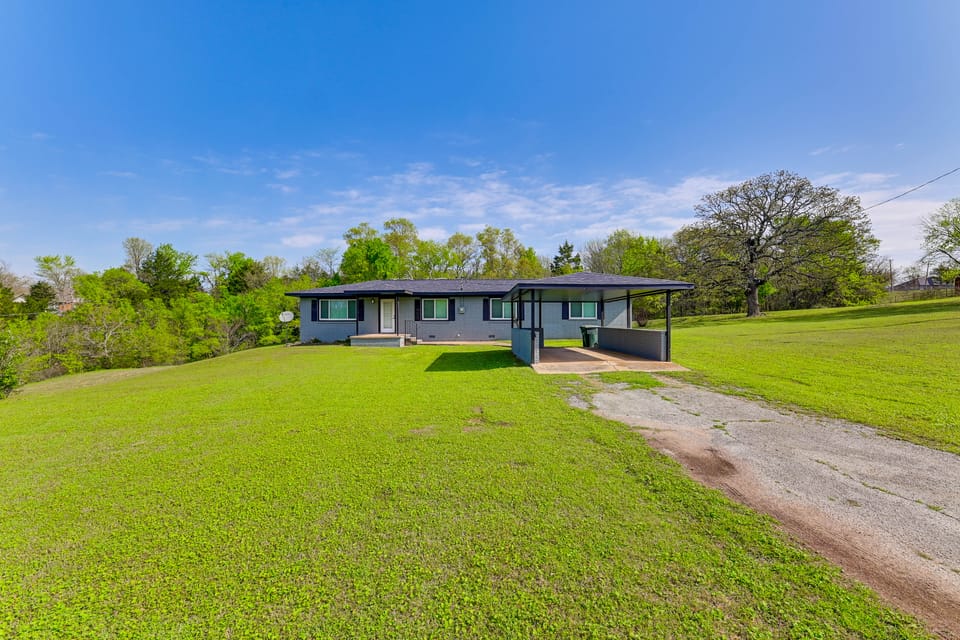 Whether you're here for small-town charm, outdoor adventure, or a little peace and quiet, you’ll find the perfect home base for your Tishomingo getaway at this 3-bed, 2.5-bath vacation rental. Sip your morning coffee on the furnished deck, then explore the downtown district, cast a line in the Blue River, or venture to Lake Texoma. As evening falls, gather around the fire for s’mores and captivating stories!