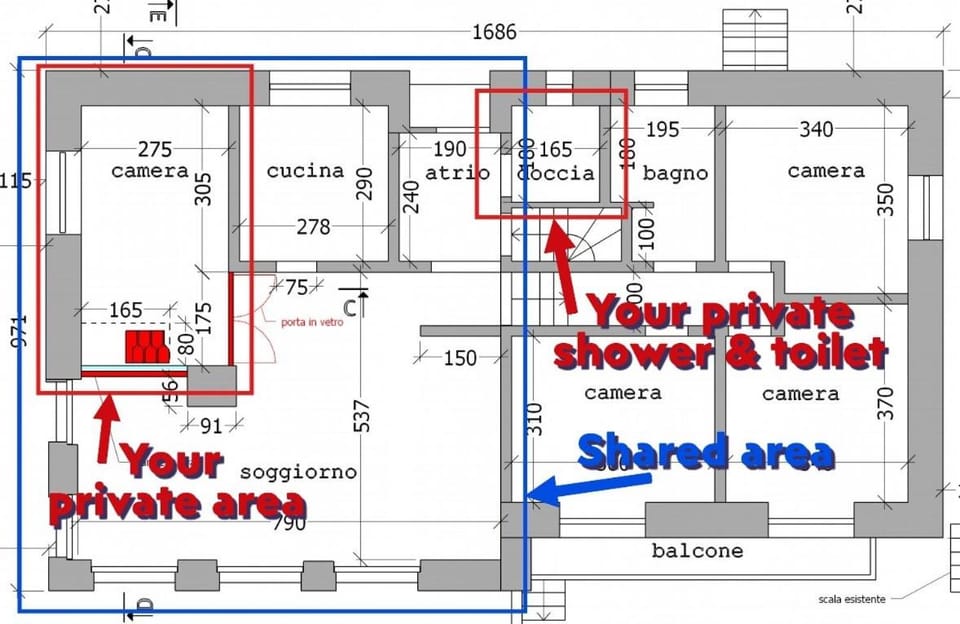 Casa celeste, stanza in appartamento condiviso