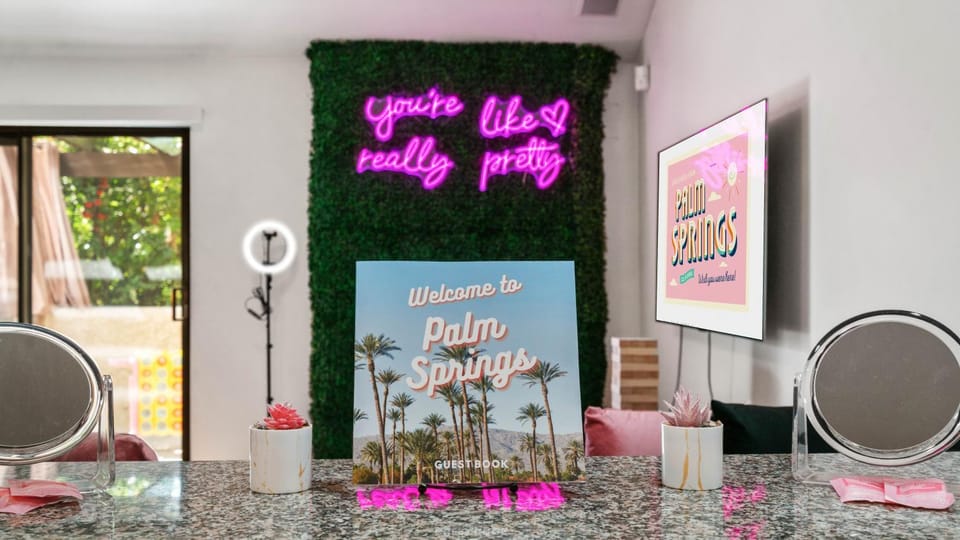 Girls Trip With Pool, Hot Tub, Games, Tennis Court is located in Palm Springs, just 5 miles from Escena Golf Club and 5.3 miles from Palm Springs Convention Center. This property offers access to a balcony and free private parking.