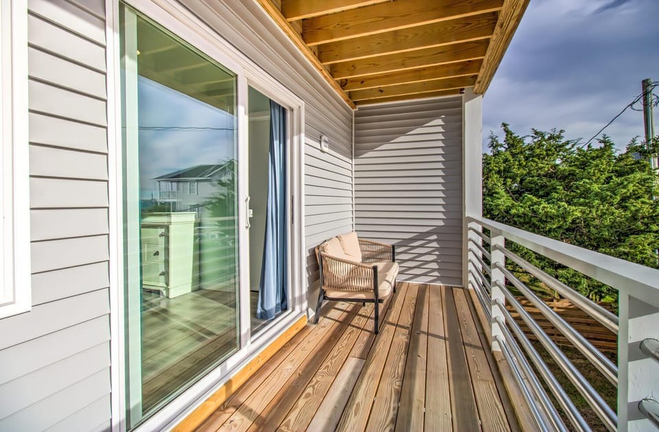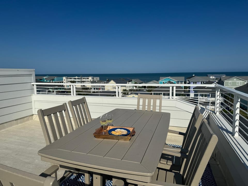 Enjoy the best of Kure Beach in our House, Luxury Kure Beach Getaway | Steps to Beach, Ocean Views, Elevator, Grill + Games. A stunning property with amenities including Air conditioning, Balcony/Terrace and Dryer, and more.