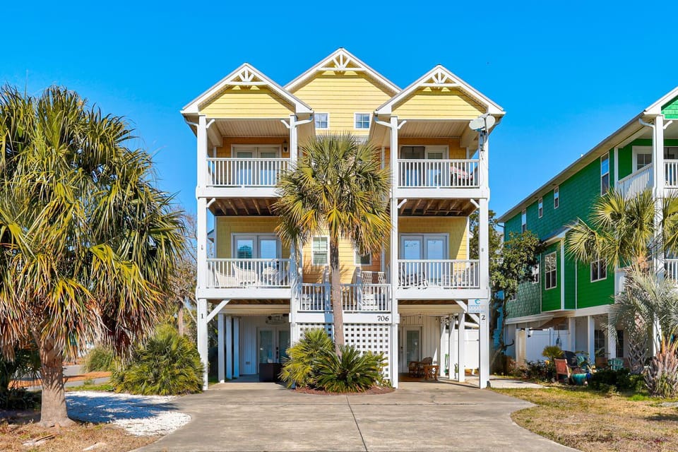 Indulge in a peaceful retreat at Island Sunrise Town Home 3 Bdrm/2.5 Bath Sleeps 12! 7 Min walk to the Beach!, our elegant House in Carolina Beach. Enjoy amenities including Air conditioning, Balcony/Terrace and Dryer, and more.