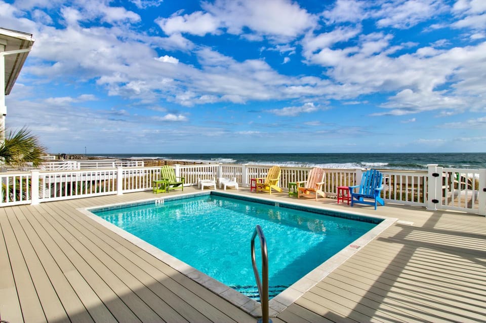 Business stays, family stays, couples stay, getaway vacation, and rental in Kure Beach at Perma Grin by Carolina Getaway | Oceanfront w/ Private Pool & Hot Tub for $2,032 for your next trip.