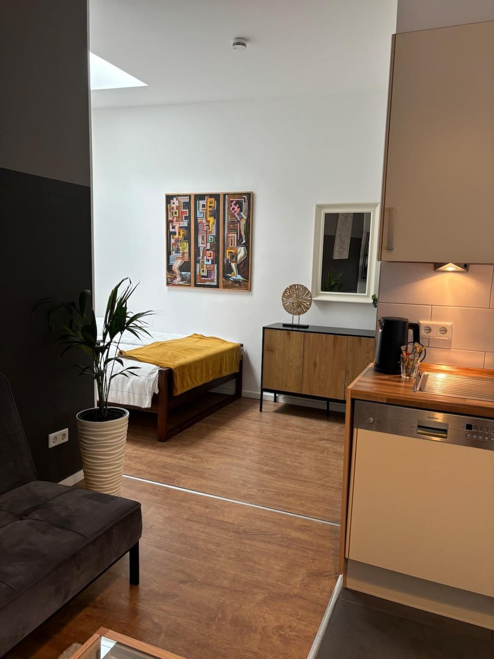 Obwohl die Wohnung in der Nähe einer Autobahn und einer Hauptstraße liegt, haben wir davon absolut nichts gehört. Die Lage im ruhigen Innenhof sorgt für eine überraschend friedliche Atmosphäre.