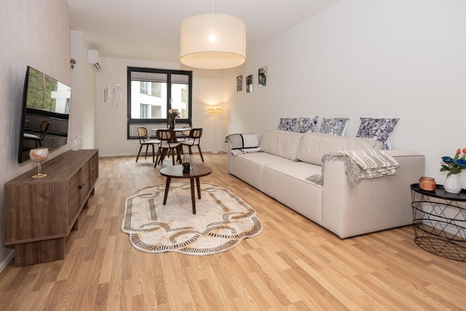 Place is a gem - beautiful view from the window, new building, more then enough space for 3 people, very well designed apartment - we loved staying there. A pleasant walk to nearly every location you'd want to see in Sopot.