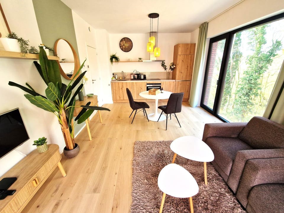 Well it is a nice new built, cosy apartment with everything that you need for a shorter stay. The kitchen with a full appliances setup, a nice comfortable bed 10/10, great dinning table and living room with the sofa chairs. Also has a big balcony/terrace on one side which is great to have a sit down and as it is newly built not much neighbors and noise around so you can enjoy the peace and quietness. Also the host is great, anything that I needed was taken care off and if there is a query it was answered within minutes.