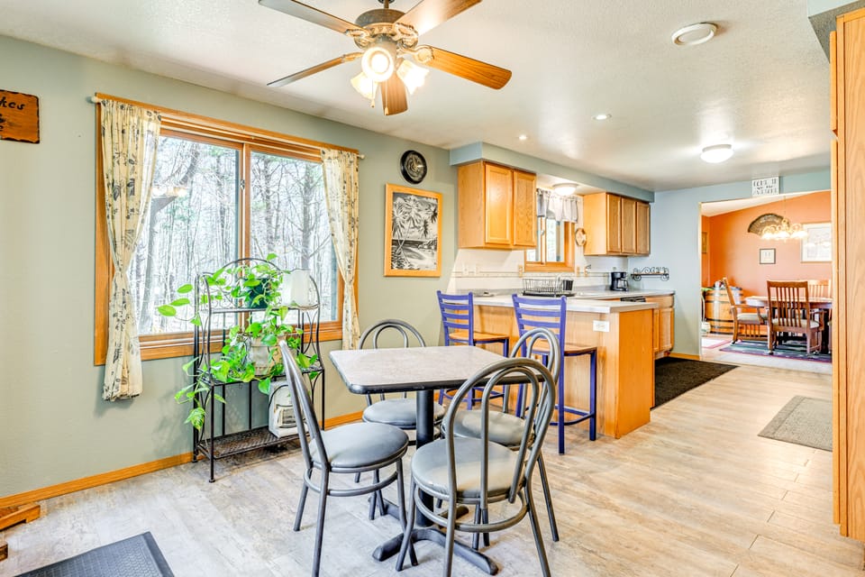 Enjoy a relaxing family getaway at this 2-bedroom, 2-bath vacation rental in Manawa. The home features a private backyard with a spacious deck, grill, and 2 fire pits — ideal for outdoor fun and evening s’mores. Inside, you’ll find a fully equipped kitchen, comfy living space, and all the essentials for a stress-free stay. When you're ready to explore, hike nearby trails, tee off at the golf course, or grab lunch in town!