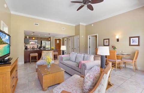 This exceptional five-bedroom ground-floor offering combines three spacious neighboring suites, Hokulani 144, 145, and 147, to create the perfect gathering place for any large group or family.
