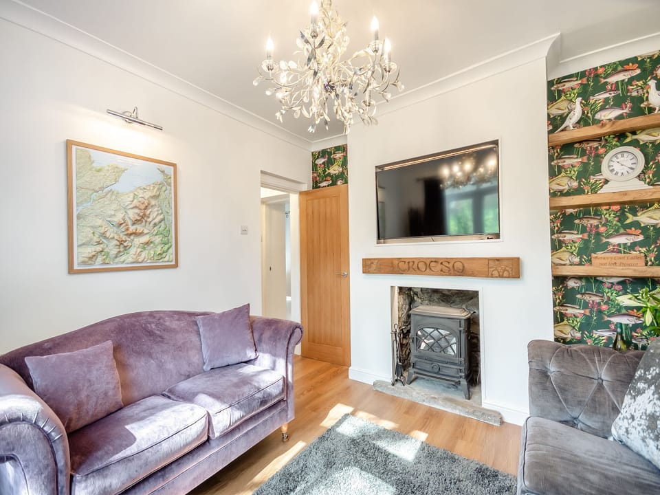 Living room: Smart TV, Electric Woodburner, French Doors Leading To Garden