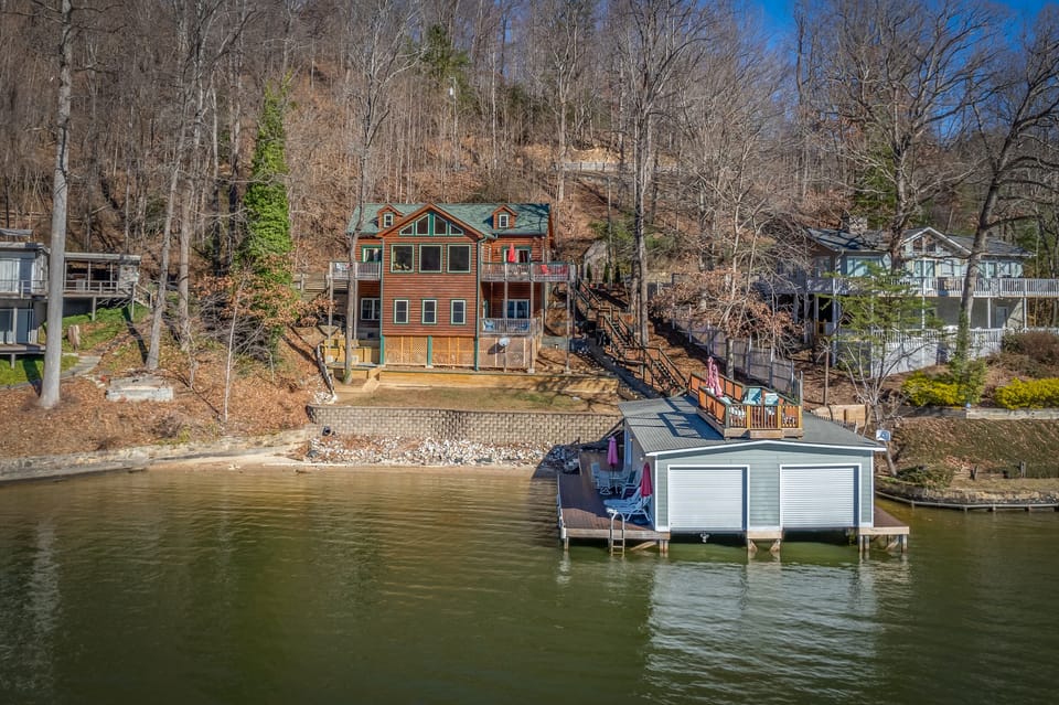 Experience lakeside luxury in this stunning 5 bed, 5 bath cabin that sleeps 12 on Lake Lure. Nestled against the serene waters, this retreat offers breathtaking views and direct lake access. The highlight? An incredible boat house, perfect for family fun and unlimited adventures. With spacious interiors, modern amenities, and tons of outdoor space, this cabin is a dream escape for those seeking the perfect blend of comfort and nature. Your lakeside paradise awaits!