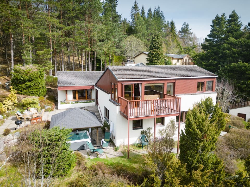 Inside this uniquely designed Lodge split over three levels the living area has a vaulted ceiling, comfy leather sofas, cosy log burner and balcony which has lovely views of the Cairngorm mountain range.