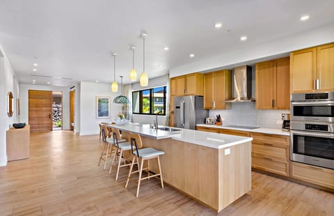 Each gourmet kitchen featured Bosch stainless steel appliances and is fully stocked for you to prepare your favorite meals and refreshments. Sliding pocket doors open to reveal massive 500+ sq ft lanais with abundant lounging and dining space, plus an outdoor kitchen with a private BBQ grill.