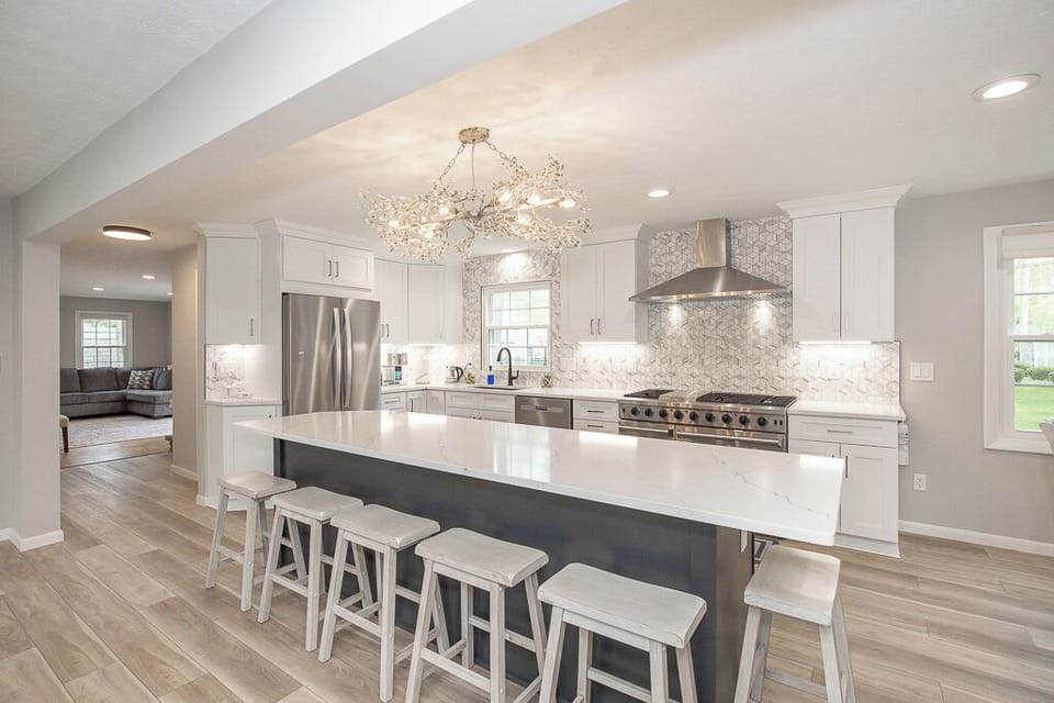 Welcome to this newly renovated luxurious home designed to comfortably house multiple families or a group looking for a wonderful getaway. The large kitchen boasts a 9 foot island with a 48 inch industrial stove and double oven. The open living room allows for comfortable gatherings while the family room allows for a secondary gathering area. The five bedrooms allow for comfortable sleeping arrangements with two en-suite bathrooms, six bunk beds, four king beds, and two futons. House is located minutes from Avon Point Park and the Avon Lake boat launch. Neighborhood has plenty of restaurants, coffee shops, grocery stores, parks, and anything else you might need for the ideal family getaway.