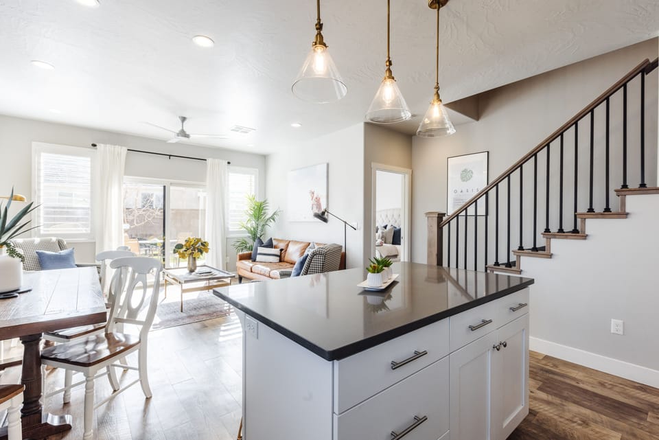 You'll be able to enjoy a relaxing getaway by sitting candlelight and snuggling up in the warm cozy blankets and pillows provided. Not only is this home charming and relaxing but is also kid-friendly, can comfortably sleep 10 and is perfect for family reunions and events. Enjoy the modern fully-stocked kitchen, second living area upstairs to relax and enjoy, high-end bedding in each room, and spacious living areas. Completely furnished and stocked, we've thought through the small details, so you can enjoy your stay worry-free.
