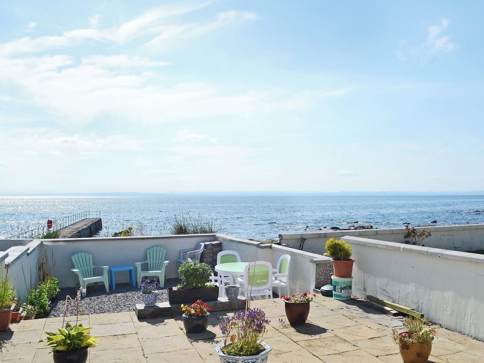Bedroom: Double (4ft 6in) Bed, 20" Freeview TV. Economy 7 heating, electricity, bed linen, towels and Wi-Fi included. Welcome pack and doggy extras.. Enclosed garden with sitting-out area and garden furniture. Rear patio with garden furniture. Private parking for 2 cars. No smoking. Please note: There are 3 steps in the garden. The garden is accessed across a lane.. Seascape is situated right on the edge of the sea in the pretty hamlet of Hilton. This pretty 19th-century stone terraced property enjoys spectacular, uninterrupted seascape views from the cottage and gardens. Located next door to the owner, it is a truly romantic seaside cottage for two. The attractive open plan living space looks out across the shoreline, where dolphins and porpoises are regularly seen. There is plenty of comfortable seating in the living area, and the bright modern kitchen is very well equipped and complete with a breakfast bar. A door leads out from here to a secluded patio garden with outdoor garden furniture. Cottage stairs lead up to the charming double bedroom where a small table and chairs at the far end look out across the sea, taking maximum advantage of the amazing views. There is a modern shower room on the ground floor. Opposite the cottage, across the tiny backwater lane, there is a delightful terrace garden overlooking the sea. With flower pots, tubs and outdoor garden furniture, it provides an ideal spot to enjoy a drink whilst watching the small craft bobbing on the bay in the tiny harbour.