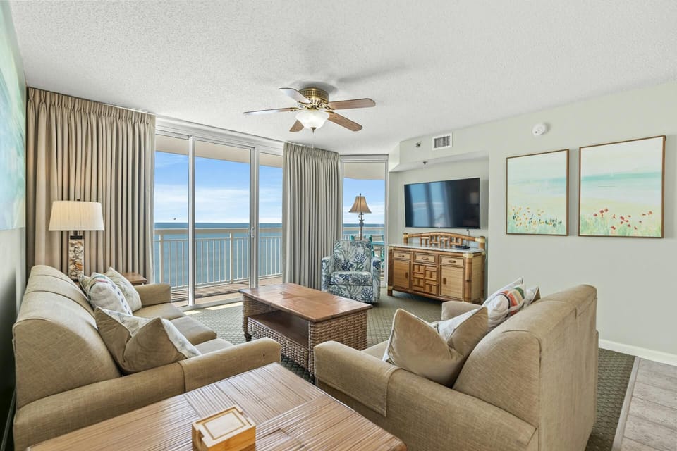 Indulge in a peaceful retreat at Oceanfront Luxury Corner Unit, Jacuzzi Tub, Lazy River | Crescent Shores - S 1212, our elegant Apartment in Crescent Beach. Enjoy amenities including Air conditioning, Balcony/Terrace and WiFi/Internet, and more.