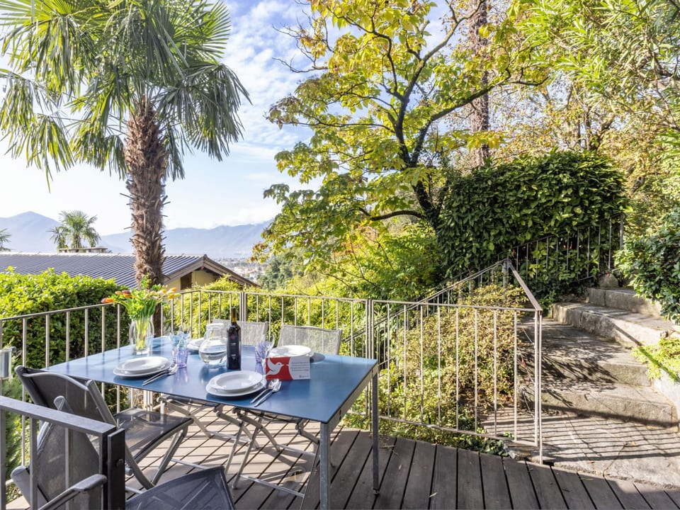Muralto-Locarno: In a beautiful south-facing location, above Muralto above Lake Maggiore, in the middle of a magnificent park landscape with over 150 plant species: An oasis of peace. Ecological operation with solar system for hot water and 2 air heat pumps for energy. 2 houses in a terraced location, always with a view of the lake and the mountains of Gambarogno with Monte Tamaro. Cosy resort "Egner", detached, surrounded by trees. 2 houses in the residence. 5 apartments in the residence. On the outskirts, 1 km from the centre of Muralto - Locarno, in a secluded, quiet, sunny position on a slope, along the wooded area, 1.4 km from the lake, 2.3 km from the beach, in a cul-de-sac, south facing position. For shared use: natural state property with lawn and plants, beautiful garden to relax. Outdoor shower, barbecue. In the house: table tennis, central heating system. 400 m long steep, narrow motor access to the grounds. 50 m footpath to the house. Parking (limited number of spaces, extra) at 50 m. Shop, supermarket 700 m, restaurant 500 m, pedestrian zone 700 m, 15 minute walk to the centre, bus stop "Locarno Piazza Stazione" 700 m, railway station "Locarno SBB" 700 m, outdoor swimming pool 2.3 km, indoor swimming pool 1.8 km, thermal baths "Termali & Salini, Locarno" 1.8 km, lake Lago Maggiore. Golf course (9 hole) 2.3 km, minigolf 1.2 km, walking paths from the house 1 m, cable car 3 km. Nearby attractions: Madonana del Sasso, Orselina, Locarno-Ascona, Ronco sopra Ascona, Falconeria, Kamelienpark, Piazza Grande, Swissminiatur, Melide, Swissminiatur, Melide, Castelli di Bellinzona. Well-known lakes can easily be reached: Lago Maggiore, Lago di Sambuco, Lago di Lugano, Lago di Como, Lago di Orta. Hiking paths: Valle Maggia, Valle Verzasca, Cardada, Monte Tamaro - Monte Lema, Monte Generoso, Malcantone. Please note: no lift. Suitable for families, baby equipment on request (extra). The owner does not accept any youth groups. Loading and unloading of baggage is possible at the holiday house. Additional accommodations can be booked. Property ref. CH6600.361.1-5 is situated on the same property. All houses/apartments are individually designed/furnished. Outdoor area for all guests: grill, seating area, sunbathing lawn, bamboo shower, terraced botanical garden/with labels of the plants and plant plan for overview.