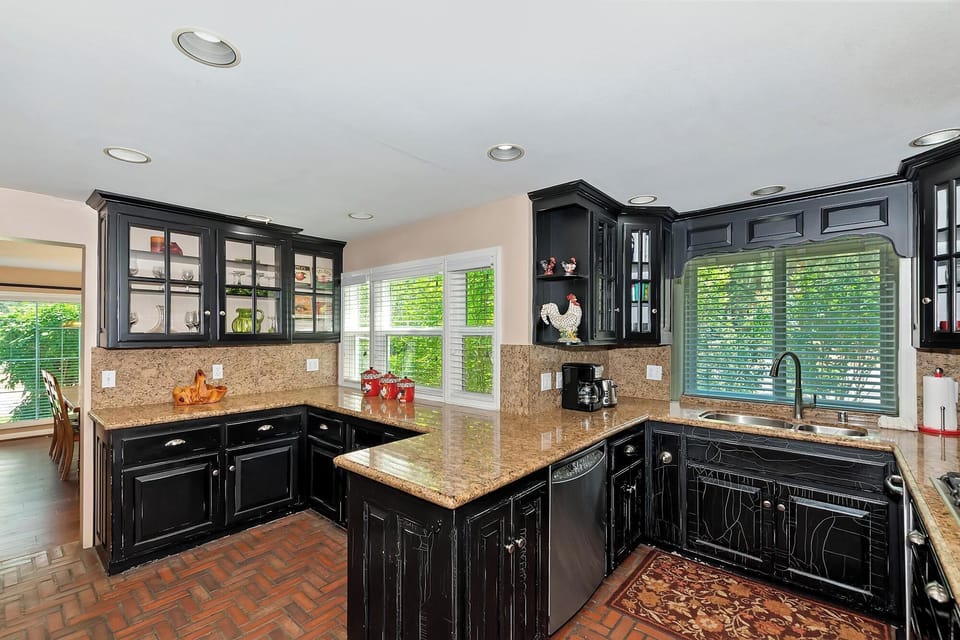 ✓ Fully Stocked Kitchen w/ Gas Range Top, Wall Oven, Microwave, Refrigerator, Dishwasher & Coffee Maker - Plenty of Countertop Space - Formal Dining Table w/ 8 Chairs + Small Dining Table/Card Playing Table in 2nd Living Room w/ 4 Chairs