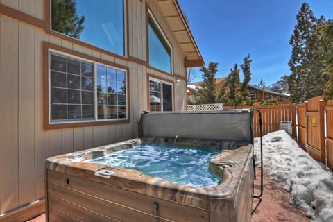 What amenities are available at Villa Pines by Destination Big Bear : Nestled in the Upper Moonridge with Beatuiful Views! Outdoor Hot Tub in Fenced Yard!?