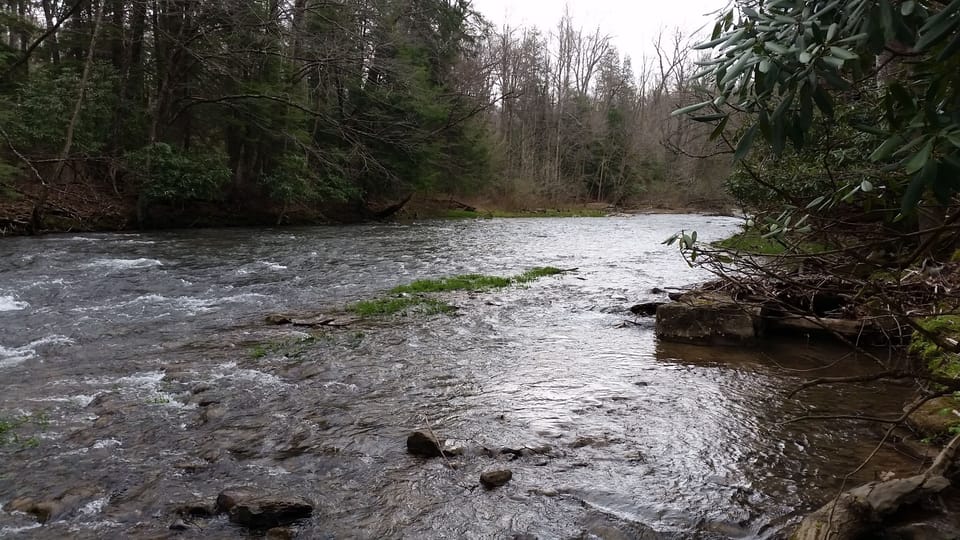 The Get-Away is nestled in a quiet cabin community right on the river with easy access to the two lane road. Enjoy pristine river views from the back deck, private river access and campfire right on the river bank.