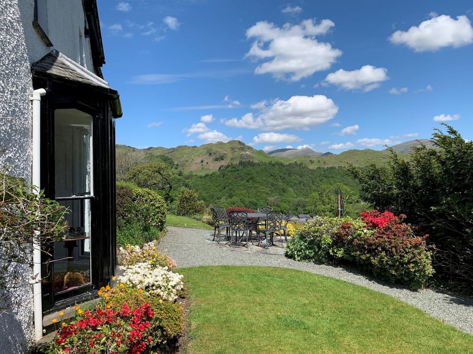 The terrace and garden provide fantastic views across to Loughrigg and beyond. There was a large owl nesting in one of the bushes in the garden this year and swallows are regular visitors. Please bear in mind that parts of the garden are quite steep and you will need to keep an eye on smaller children.