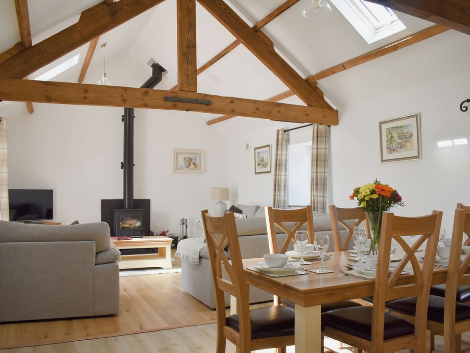 Bathroom: Bath With Shower Over, Toilet. Oil central heating, electricity, bed linen, towels and Wi-Fi included. Initial logs for wood burner included. Travel cot and highchair available on request.. Enclosed lawned garden with patio, garden furniture and children’s play area. Hot tub for 6 (private). Private parking for 3 cars. No smoking.. Accessed by a rough track this renovated farm building is set in a lovely tranquil spot surrounded by fabulous Welsh countryside. Inside there’s a fantastic open plan kitchen, dining and living area, a top quality comfy entertaining space. There’s even a cosy wood burner to light after a day out exploring this splendid region. Each of the bedrooms have plush mattresses and bedding to match, you’re guaranteed a peaceful night’s sleep. Outside is a private hot tub to relax and admire the views from, and maybe spot your woolly neighbours, the local farm sheep in the neighbouring fields! You’re really in the heart of all north Wales with everything it has to offer, with lakes, coastal paths, Snowdonia and popular tourist towns all really close by.