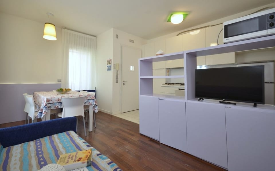 We are delighted to welcome you in our stylish first floor apartment, suitable for up to eight guests. It features a spacious living room with a double sofa bed, a nice and equipped kitchen, a bathroom with a shower box and two terraces. The sleeping area includes a double bedroom, a bedroom with a bunk bed and another double bedroom with an enclosed bathroom. The flat is also equipped with a washing machine, a dishwasher, a microwave, an American coffee machine, A/C, heating, Satellite TV and one uncovered parking space per booking. Beach distance: 450mt. °Pets are not allowed. °Photos are generic: the accommodation may differ in furniture, decorations and colours.