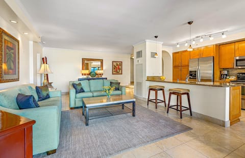Enjoy an updated poolside common area with a two-tiered freshwater pool, a splash pad, a quiet upper pool, two hot tubs, and a large grilling area. The immaculate resort grounds connect directly to the popular three-mile-long Ka’anapali Beachwalk, providing guests effortless access to neighboring acclaimed restaurants, luaus, shopping, and activities.