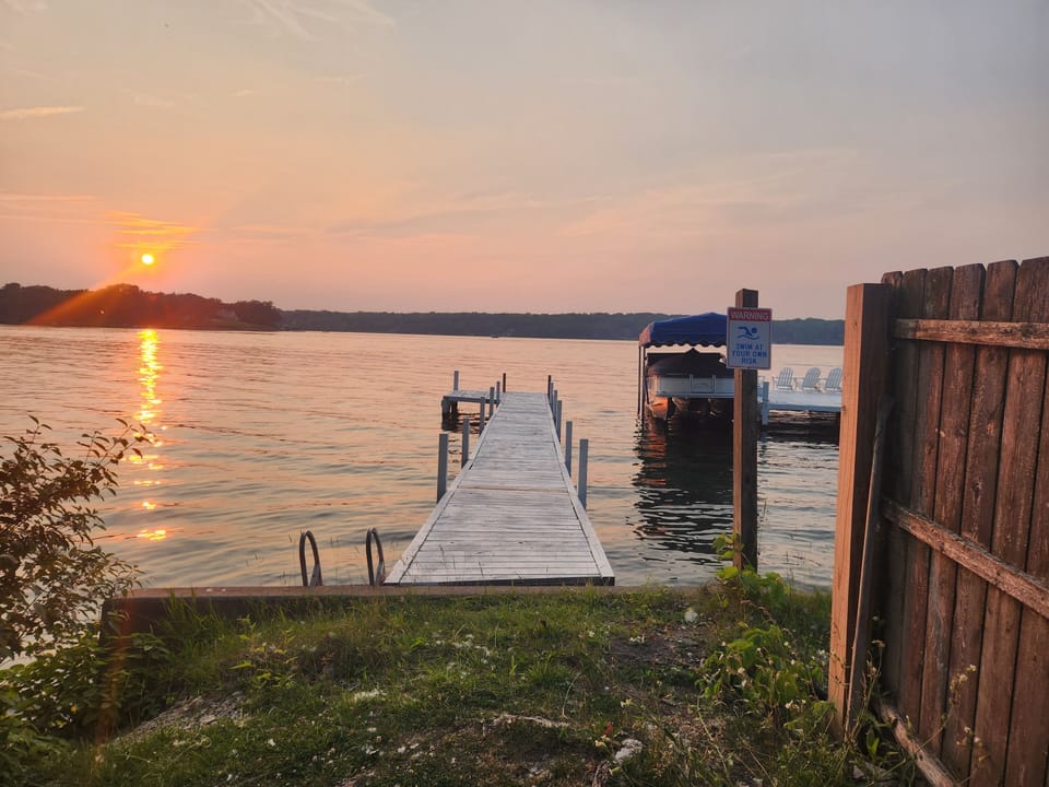 Take in the beauty of what Wisconsin has to offer. We have lake access with a shared pier for fishing, swimming and loading and unloading your boat. 3 restraunts/bars walking distance for entertainment and meals. Years round rentals with central air and heat for ice fishing and snowmobiling. Free boat launch 1 block away and boat rentals available in area. One of the premier fishing lakes in Southern Wisconsin only 1 1/2 hours from Chicago. 15 minute drive to down town lake geneva. Sit by your own bonfire and gaze at the millions of stars.