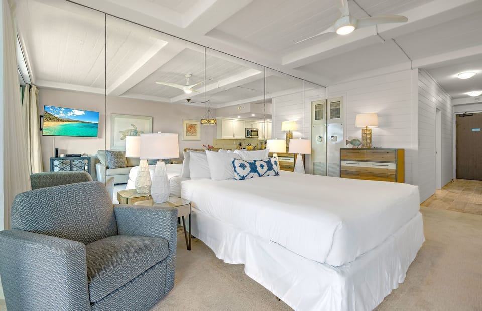 It's fully renovated 500+ sq ft interior provides the perfect setting for small families and couples to gather comfortably, just steps from the soft sands of Kaanapali Beach. Enjoy renovated flooring throughout, upgraded fixtures, and gorgeous island-style decor.