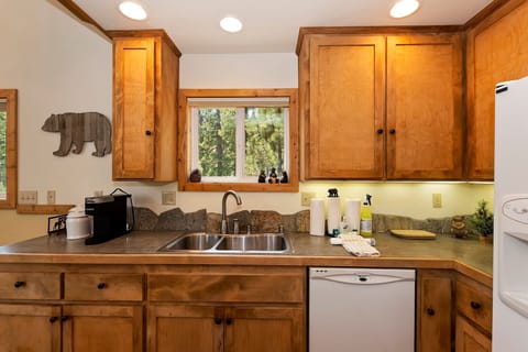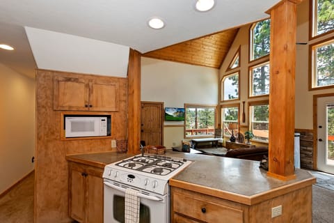 ✹ Dining and Kitchen Area: Gather around the country-style breakfast nook with seating for your entire group. The well-appointed kitchen includes a fridge/freezer, gas range/oven, microwave, and dishwasher, providing all the essentials for your stay.