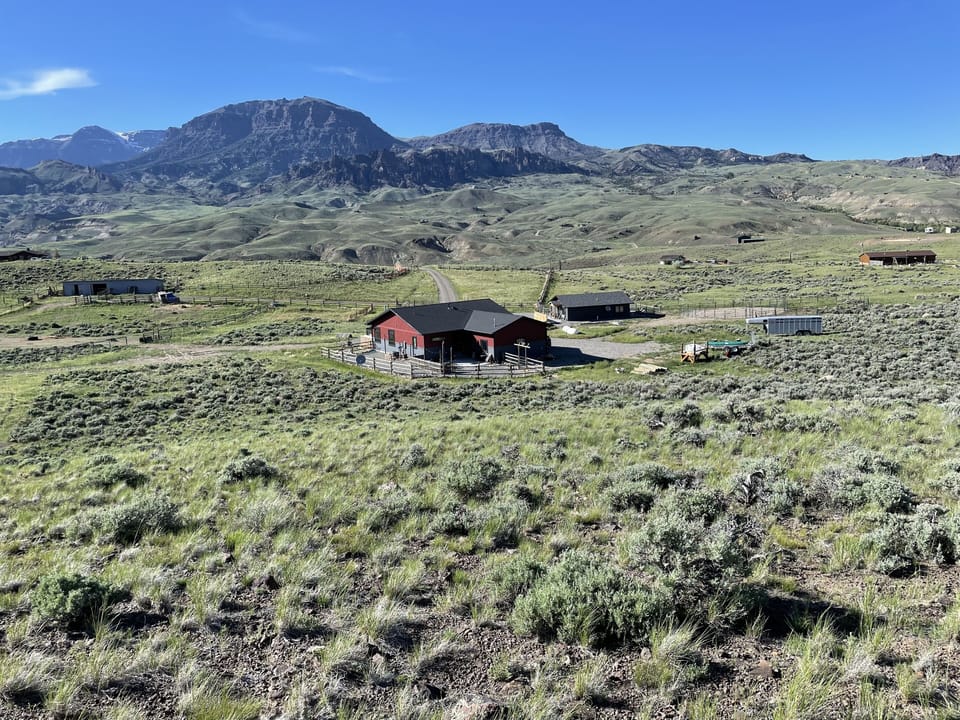 Enjoy the perfect getaway on a brand new cabin on a 18 acre ranch. Enjoy 360 views from inside the cabin of the Absaroka Mountains surrounding the property. Located in the beautiful town of Wapiti, Wy. Drive down the most scenic 52 miles in America as you reach the East Entrance of Yellowstone which is only 32 miles from the home. A perfect destination for hunters, hikers, fishing, snowmobiling, skiing/ zip lining. You can bring your own horse for 50 a night which includes water and hay.Welcome to our beautiful ranch. We have chickens, horses, farm dogs for our guests to enjoy. We welcome all our guest with farm fresh eggs.