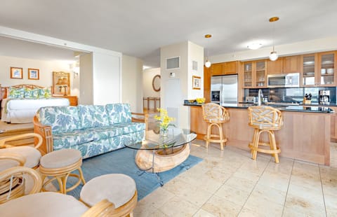This luxurious 2BR/2BA suite features a spacious 1500+ sq ft living interior elegantly outfitted with island style decor and a full modern kitchen equipped with everything you will need to prepare the perfect meal or refreshment. Dine indoors in the air conditioned dining area or on your spacious private lanai.