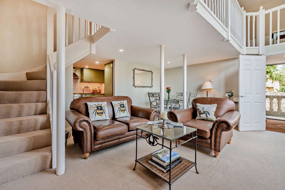This former school house has been renovated into a lovely light and bright Cotswold holiday apartment which sleeps two guests, in a welcoming mezzanine style bedroom, with ensuite bathroom. Laid out over two floors, there is a sociable open plan living area with ample seating and a well-equipped kitchen. The original stone mullion windows are a striking feature which flood both floors with natural light throughout the day. The Old School House is centrally located boasting both the Cotswold countryside and the bustling market town of Stow-on-the-Wold within easy reach. This combination of features makes for a wonderful getaway and even welcomes one dog!
