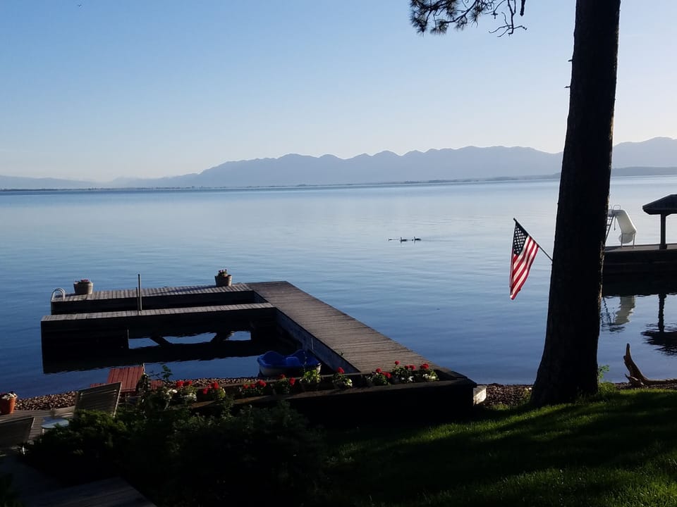 Our home, fondly called Skipping Stones, is located just 1.5 miles from Lakeside, MT on beautiful Flathead Lake with over 100' of private beach frontage and a private dock. Skipping Stones is a 4 bedroom, 3 bathroom home built on 2 levels. The main floor has two bedrooms, both with queen beds, and one full bath with the kitchen and living area that walks out to a covered porch and a large open deck with seating for eight with a grill for outdoor barbeques. The kitchen is simple and clean, it comes equipped with cookware, dishes, glassware, a bar setup, silverware, and cooking utensils. There is a fridge, a new electric range, dishwasher, and microwave, as well as a Keurig coffee maker with pods or normal coffee maker and grinder. The lake level floor has two larger bedrooms, one king and one queen, each with their own bathroom and private entrances that walk out to the lake and a large open deck with seating. The beach has a designated fire pit that is available most of the year with firewood onsite available for purchase by the bundle. We have 4 adult kayaks available to rent for a small fee.
