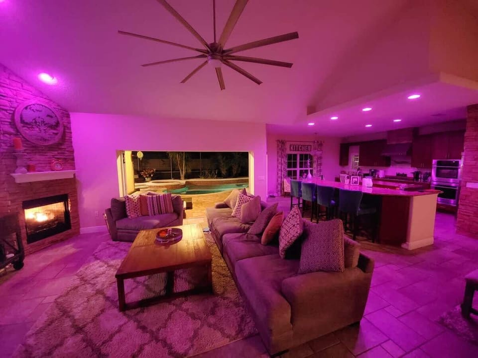 Nestled among 15 majestic oak trees, this large custom-built home offers the perfect blend of nature and luxury. Enjoy a sparkling pool, relaxing hot tub, oversized bathtub, and cozy firepit for unforgettable evenings. Stay entertained with an 86" TV and unwind in the expansive outdoor living area. With two spacious driveways and a unique man-cave garage, parking is a breeze. Experience comfort and style in this one-of-a-kind retreat!