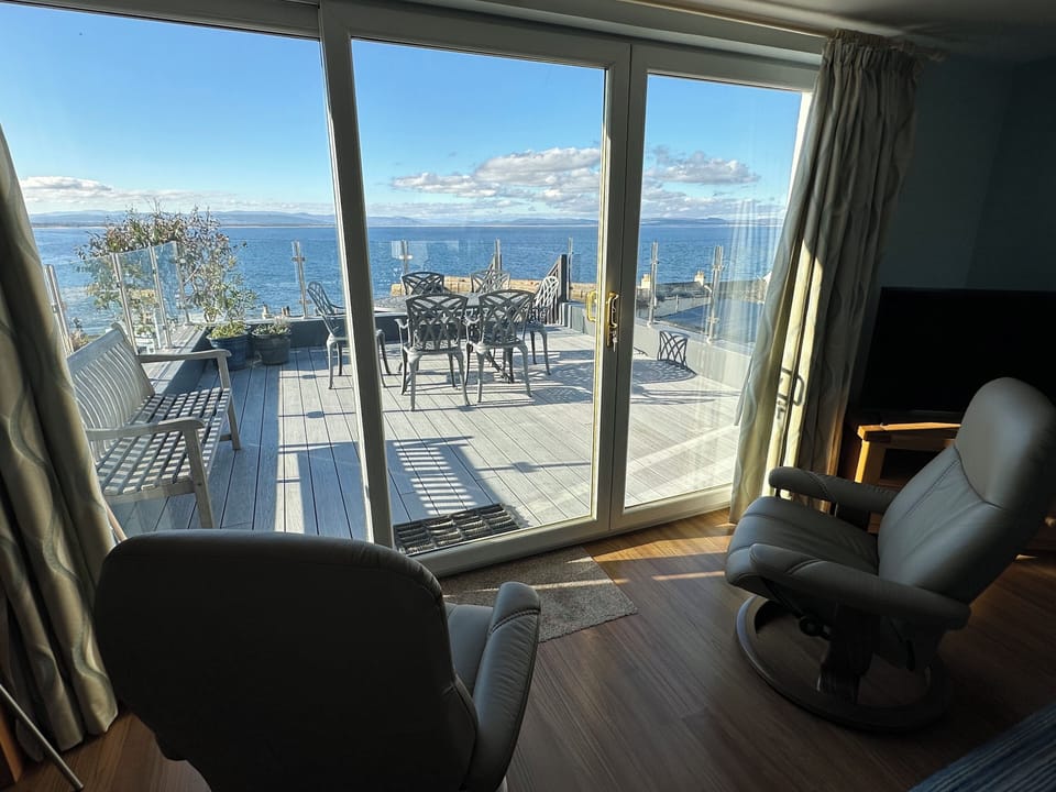 Get the kettle on, sit down and relax in the lovely reclining chairs, and drink in the wonderful view. Then open the doors out to our wonderful balcony, which has even better panoramic views - over the village rooftops, the beach, the harbour, the Dornoch Firth and the Sutherland hills beyond.
