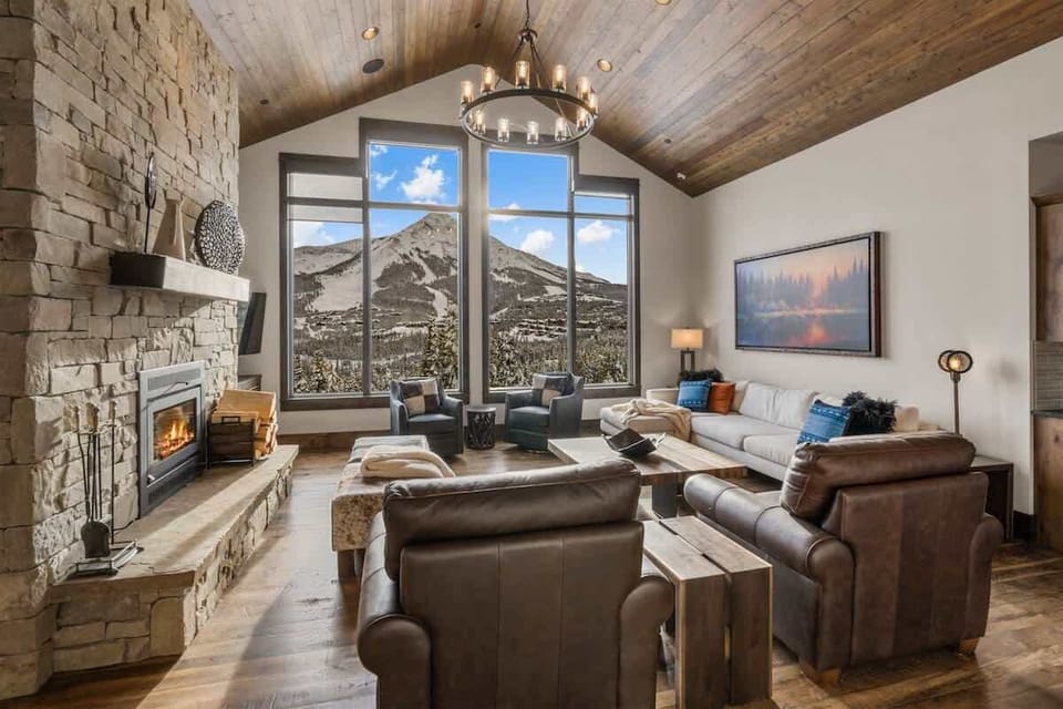 Upon walking through the front door, visitors are greeted by a welcoming living room with a wood burning fireplace as well as a Smart TV. Guests are encouraged to make use of the dreamy chef’s kitchen, fully stocked with everything you’ll need to cook a fabulous meal with friends or family and gather around the dinning table and bar top with seating for 10. In addition, the main living area displays an outdoor patio with deck furniture and a propane BBQ grill, perfect for apres-ski or warm summer nights. There is also a large mud room, a half bath, and heated 2-car garage with boot dryers and ski racks ideal for a day on the slopes. When it is time to relax, choose between the main living room or the downstairs TV room with a game table.