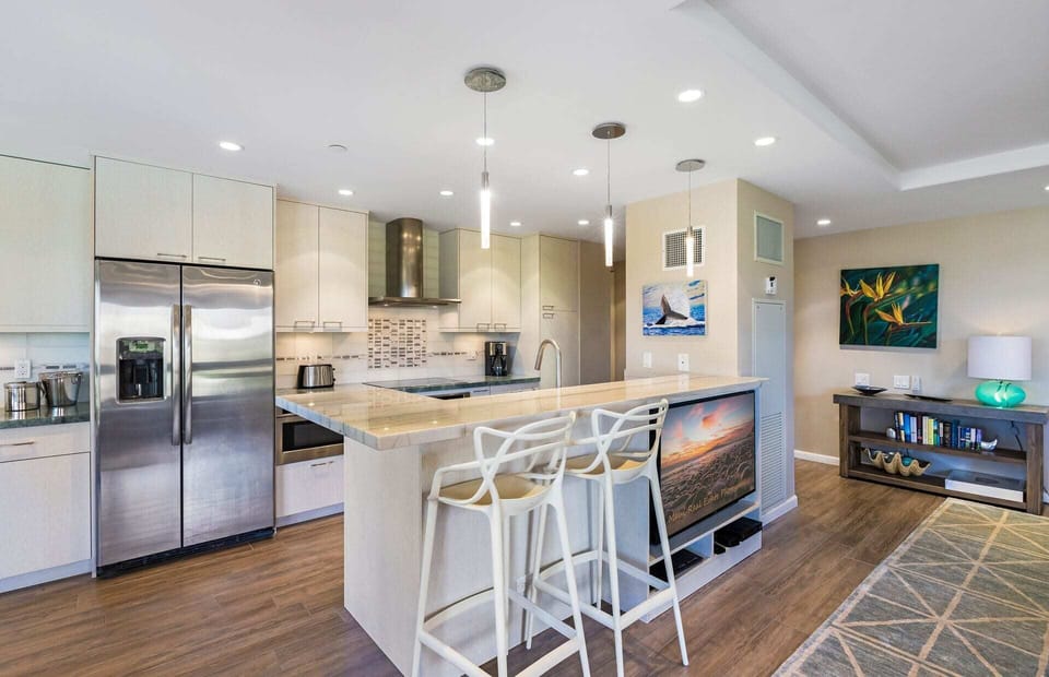 The elegant remodel was completed in 2017 and only the finest materials were used. From top to bottom, no expense was spared to create the ideal tropical retreat for your next Maui vacation. The suite comfortably accommodates up to six guests with ample room to spare.