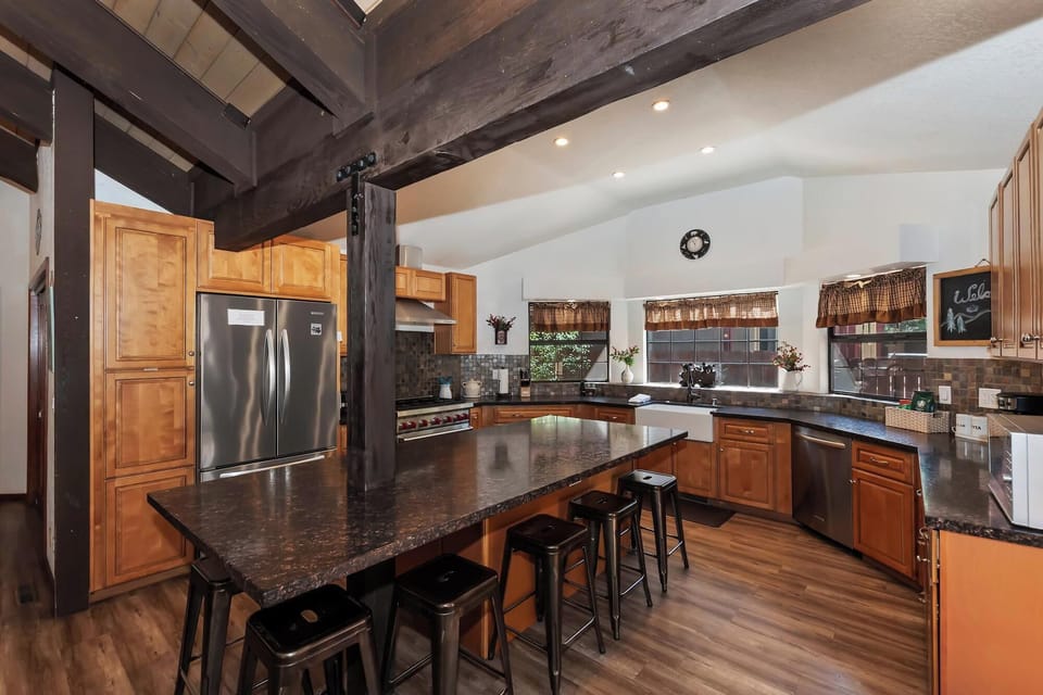 This bright and beautifully updated kitchen makes cooking for the group a joy, with tons of counter space and high-end appliances.