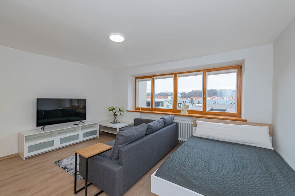 Welcome to our elegant and modern V. Sladkevičiaus g. 5 apartments! This newly renovated apartment is an excellent choice for those looking for a comfortable and functional accommodation solution for their stay. Tastefully decorated and uniquely designed, this apartment is fully equipped to make you feel right at home. The apartment consists of a living room with a comfortable sofa-bed and a smart TV, a kitchen with all its appliances, a separate bedroom with a wide bed, and a bathroom.