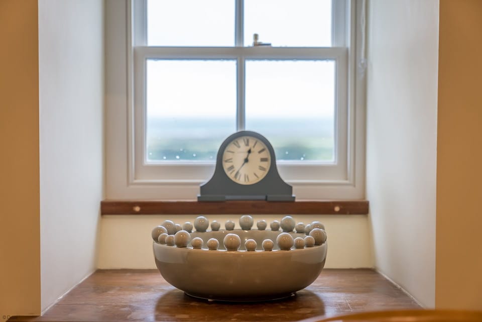 Access to a hallway from the open plan living space in this two bedroom traditional farm holiday cottage with outstanding views leads into two spacious bedrooms. The master bedroom features a double bed and is simply decorated in subtle tones with exposed beams to the vaulted ceiling. The second bedroom, a twin, is spacious and airy with chunky solid furniture to compliment the style of the cottage. A modern shower room between both bedrooms features a large curved shower cubicle with a large rain forest shower head, and a smaller multi-purpose hand held head. The modern sink unit provides ample storage space for toiletries.
