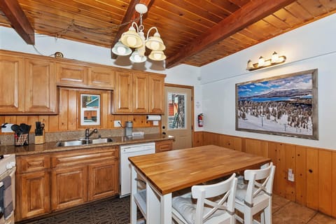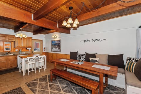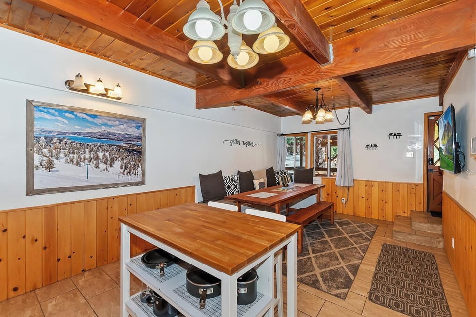 ✓ Dining Area: Expansive farmhouse-style table, large flat-screen TV with ROKU