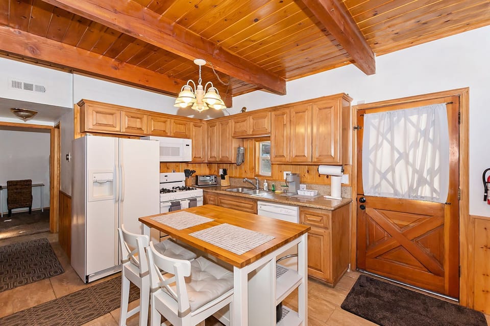 ✓ Kitchen: Modern appliances, including a gas range/oven, side-by-side fridge/freezer, microwave, and dishwasher. Keurig coffee machine provided.