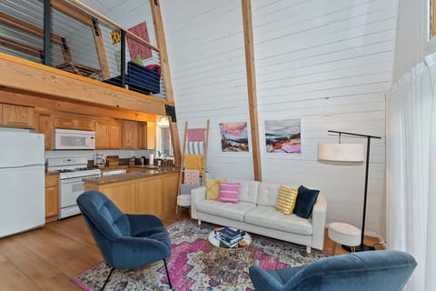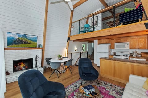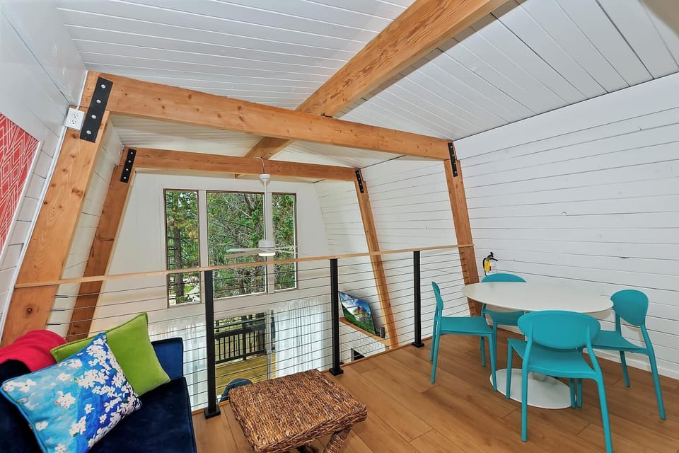 ✔ Dining Table: Seating for four on the main level, plus a second small table in the loft area.
