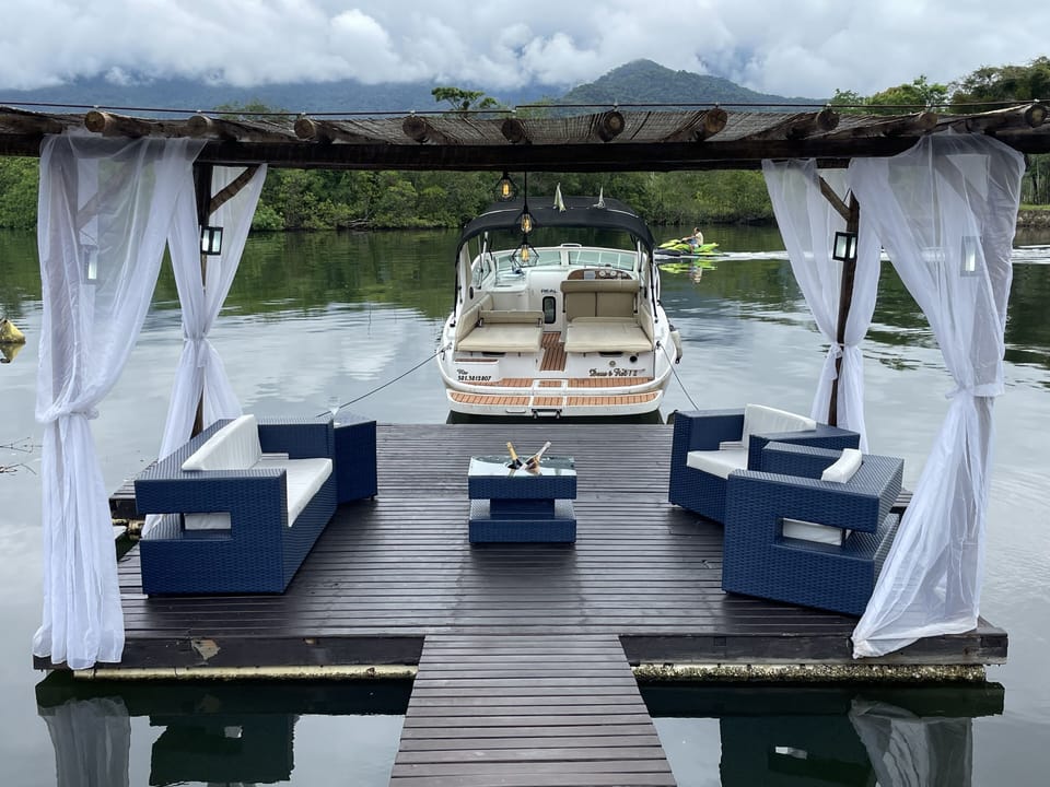 You'll find a boat on site at this pet-friendly vacation home. There's convenient covered onsite parking, so you can leave your vehicle behind and head out to Baía da Ilha Grande and Praia das Goiabas, just a short walk away.