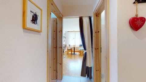 Bright 2-room apartment approx 45m on the first floor (second mezzanine), in a quiet location in Surlej near the Corvatschbahn. Entrée with small hall stand, shoe closet and sitting area. Spacious living room (parquet floor) with a small niche for the dining table for four people, one armchair and two sofas with a sleeping possibility. Access to the balcony with view towards the Corvatsch. New kitchen with oven, dishwasher, microwave and water heater. CHICCO D'ORO coffee machine. Bedroom (parquet floor) with double bed (two mattresses 90x190), spacious closet, window overlooking the woods. Bathroom with bath (shower curtain) / WC / sink. Shared washroom and ski room. No bike room. Outside parking space. Non smoking. Pets are not allowed.