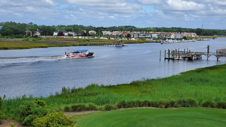This beautiful luxury vacation rental is located in the Tidewater Plantation Golf community. You have 3 bedrooms and 3 full bathrooms. The home comfortably sleeps 8 with a pullout sofa. The views of the Intracoastal Waterway are spectacular and the rooftop patio provides endless space and room for the entire family to relax. A total of four outdoor spaces include: two patios on the main floor, a private outdoor balcony off of the master bedroom, and the rooftop. Aprproximately 10 mins to the beach.