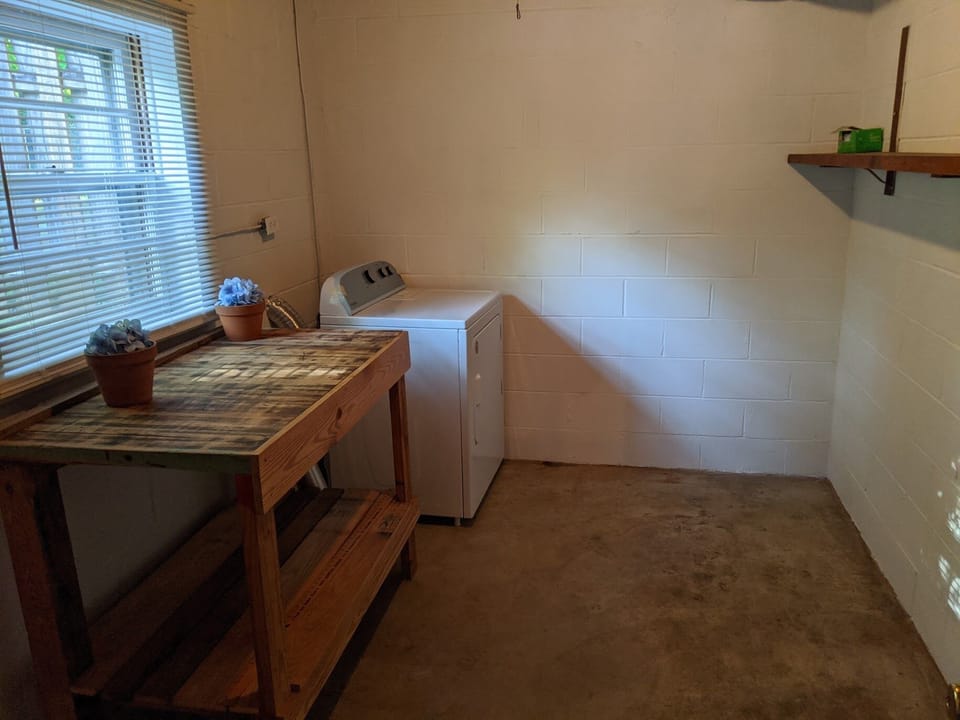 There is no house number on this property, so difficult to find at night (that’s when we arrived). It is in desperate need of landscaping. In the backyard, there is a falling apart shed, an old rusty grill, and a pool that had mold on the steps and leaves, dirt, and bugs floating in it. The house itself smells old; there were plug-in air fresheners trying to hide the smell. The floors are incredibly creaky. The small bathroom’s toilet wiggles when you sit on it. The room with one twin bed has no outlets. Two beds are in the basement; there is also couches and a tv in the basement, and concrete floors. There is no bathroom in the basement. There were two towels in the kitchen for drying; there were no dish wash cloths. Each bathroom had only 1 roll of toilet paper; we couldn’t find extra anywhere in the house. The window in the smallest bathroom is barely covered by a see-through curtain, so be aware when bathing. I definitely would not call this a beautiful home.