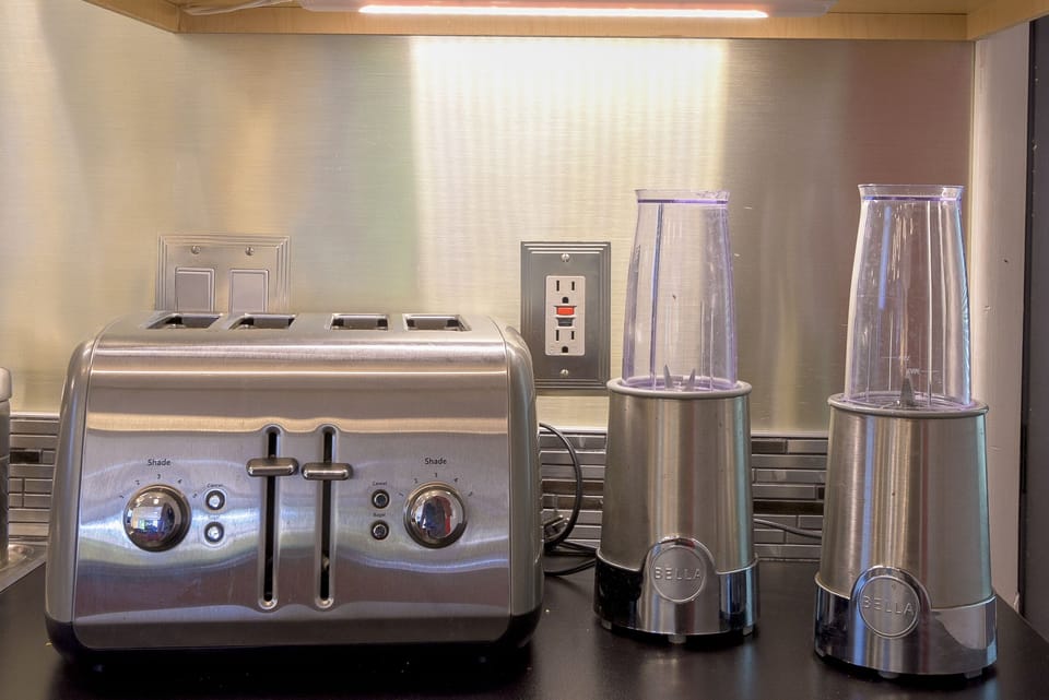 - Shampoo, conditioner, body wash, TP & hand soap provided