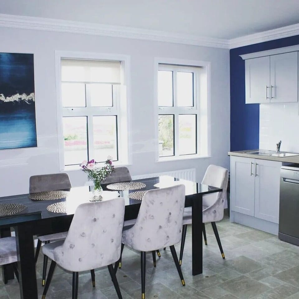 Indulge in a peaceful retreat at Luxury 7 Bed Golf Home within walking distance of town, beach and golf course, our elegant House in County Clare. Enjoy amenities including WiFi/Internet, Kitchen and Laundry services, and more.
